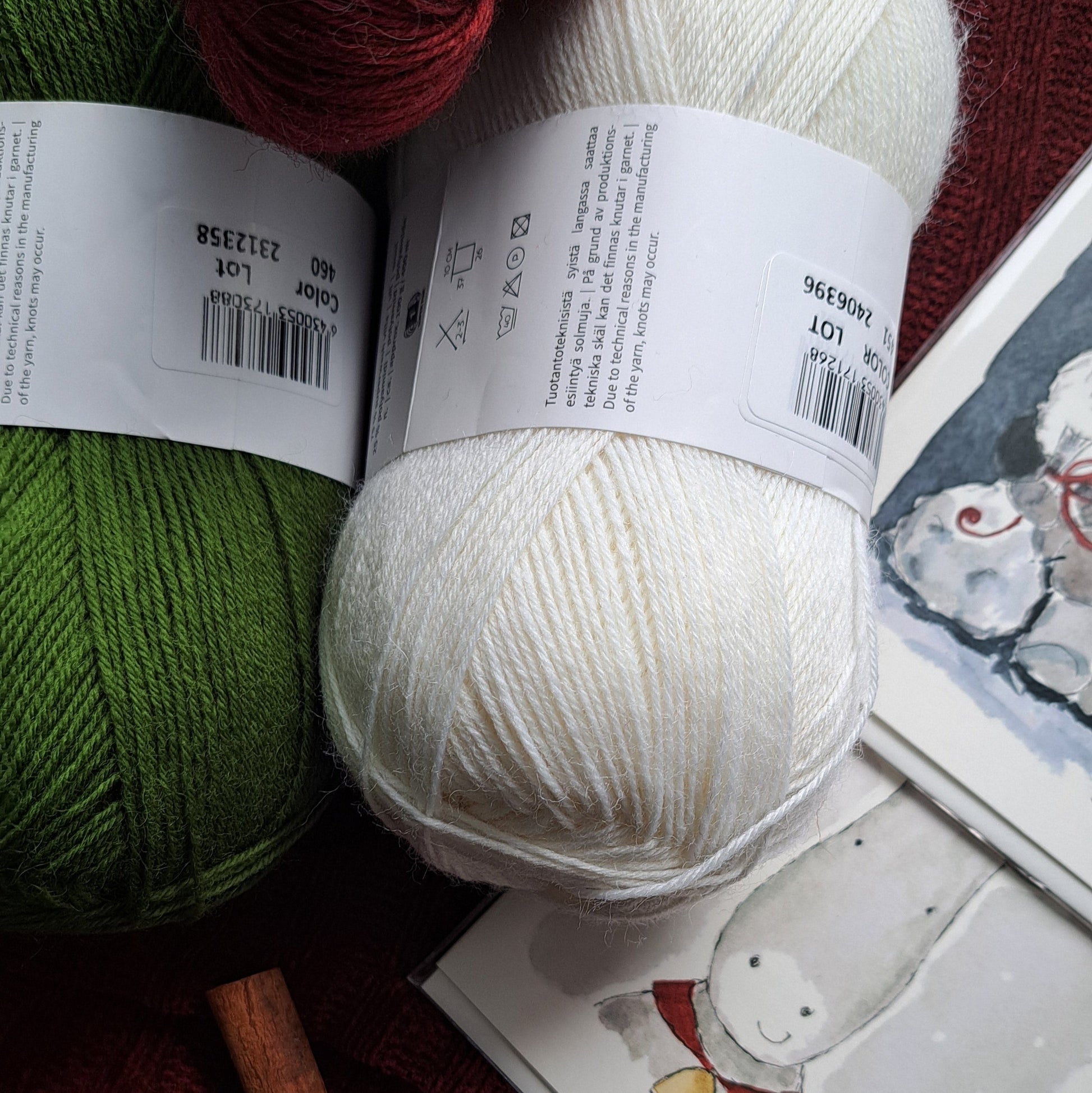 Il est composé de 2 pelotes de laine à chaussettes, d'un écheveau de 100g d'une laine surprise ( que des marques finlandaises) ... pour passer en mode lutin cosy !